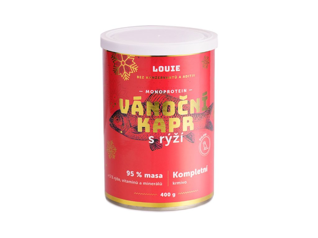 Vánoční konzerva LOUIE Dog Vánoční kapr s rýží 400g