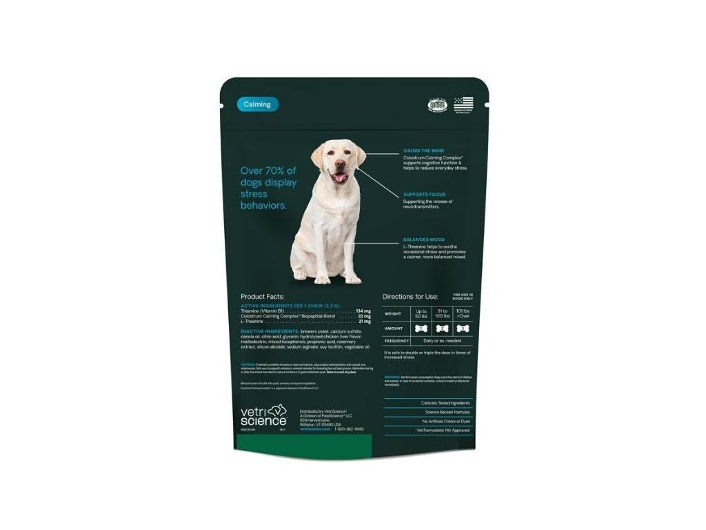 - žvýkací pamlsek s uklidňující recepturou pro domácí zvířata vystavena stresu