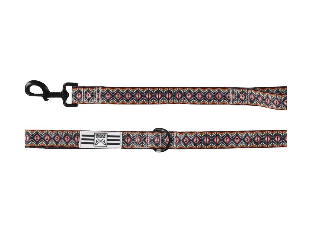 Vodítko FLAMINGO Canggu s neoprenem modré s etno vzorem 2,5x180cm