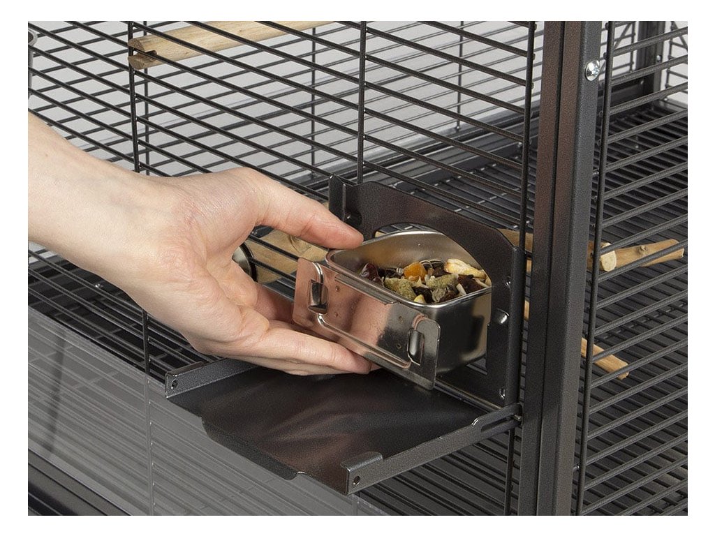- odolná krmítka se snadno vyměňují díky výklopnému systému