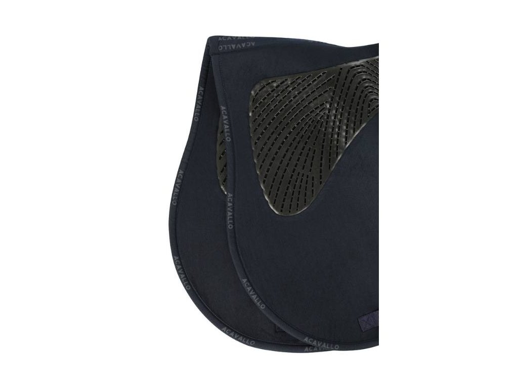 Všestranná oboustranná podsedlová dečka Acavallo® s volným páteřním kanálem v provedení ze semiše s gelovým gripem je navržena tak, aby nabízela výhody dvojité vrstvy protiskluzového a tlumicího terapeutického gelu na obou stranách. Tato inovativní vlastnost zajišťuje dokonalé přizpůsobení jak hřbetu koně, tak sedlu a eliminuje jakýkoli nežádoucí pohyb během výkonu.