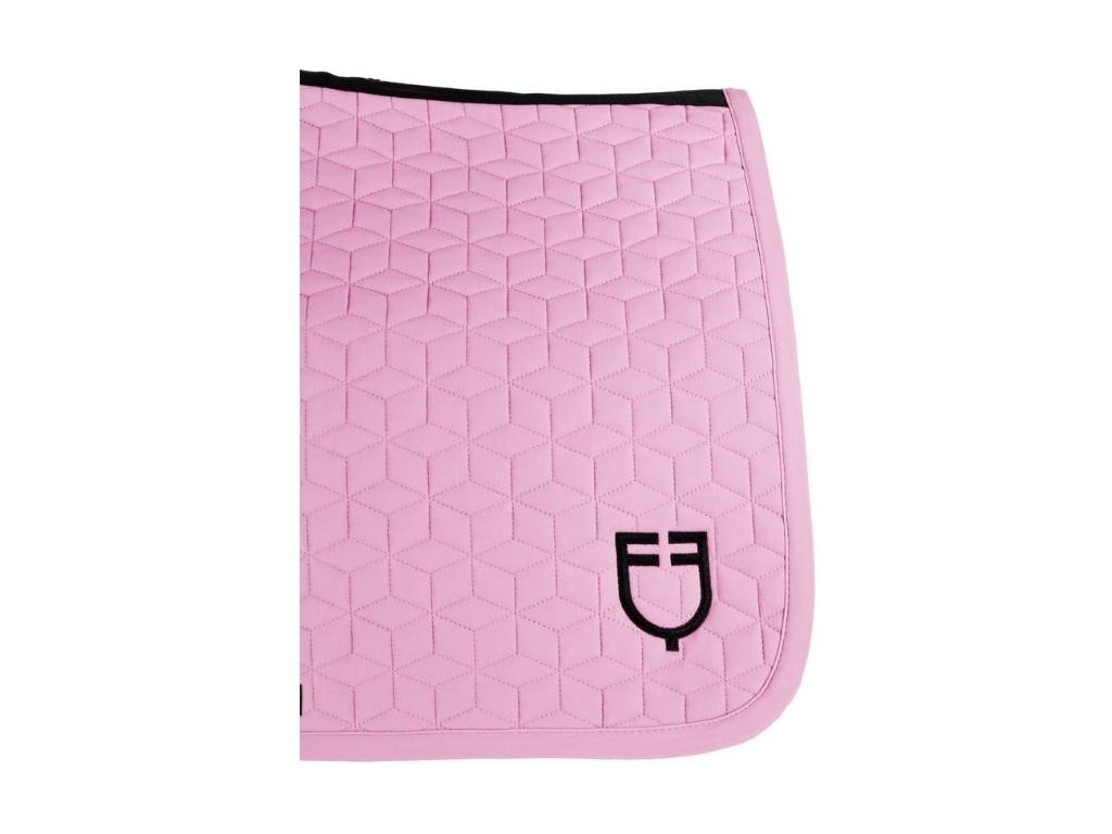 Tato všestranná podsedlová dečka je vyrobena z technického materiálu, který zajišťuje vynikající prodyšnost a nadstandardní absorpci nárazů mezi sedlem a hřbetem koně. Inovativní vaflová vazba uvnitř podporuje optimální ventilaci a reguluje proudění vzduchu, čímž minimalizuje pocení během aktivity. Anatomický tvar dečky je navržen tak, aby se vyhnul nežádoucímu tlaku na kohoutek a umožnil koni volný pohyb bez nepohodlí. Kostkovaný prošev dodává elegantní vzhled a zároveň zpevňuje konstrukci dečky. Výsledkem pečlivého výzkumu je produkt, který spojuje odolnost, prodyšnost a eleganci v dokonalé harmonii. Dekorativní kontrastní vyšívané logo na levé straně podtrhuje precizní zpracování a stylový charakter dečky.