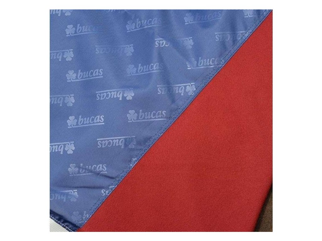 UPOZORNĚNÍ: Voda se může výjimečně dostat dovnitř deky skrze okraje nebo švy, zejména při silném dešti. Obvykle se jedná pouze o velmi omezené množství vody, které může stékat po krku koně a proniknout pod deku. Tento jev je v souladu se záručními podmínkami značky Bucas, je považován za běžný a nepředstavuje výrobní vadu.
