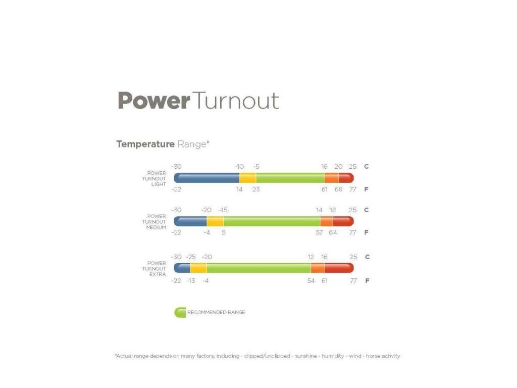 Vhodná pro teploty od -15°C do +14°C. Toto rozmezí je pouze orientační a může se lišit v závislosti na mnoha faktorech, jako je vlhkost, vítr, sluneční svit, zda je kůň oholený, jeho aktivita apod.