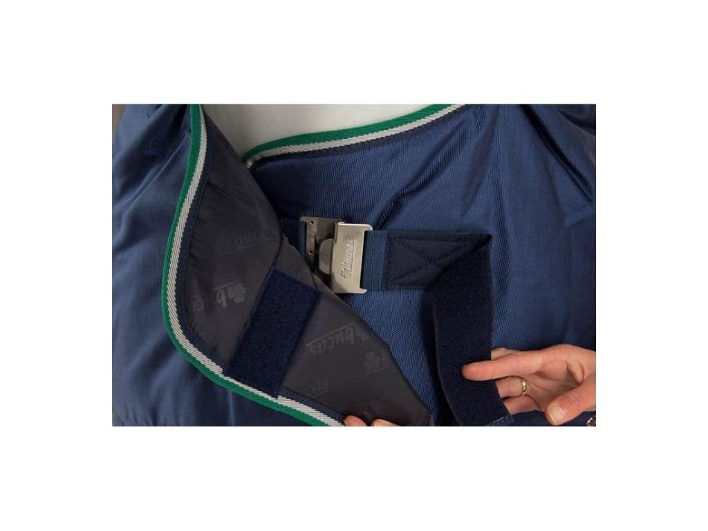 Deka je vybavena patentovaným předním zapínáním Click'n Go s magnetickým zámkem Snap-lock, které umožňuje rychlé a snadné zapínání a odepínání, přičemž kůň s ním nemůže manipulovat. Zapínání je doplněno ochranným suchým zipem. Dále obsahuje křížové zapínání pod břichem, popruhy mezi zadní nohy, popruh pod ocasem a ochranu ocasu.