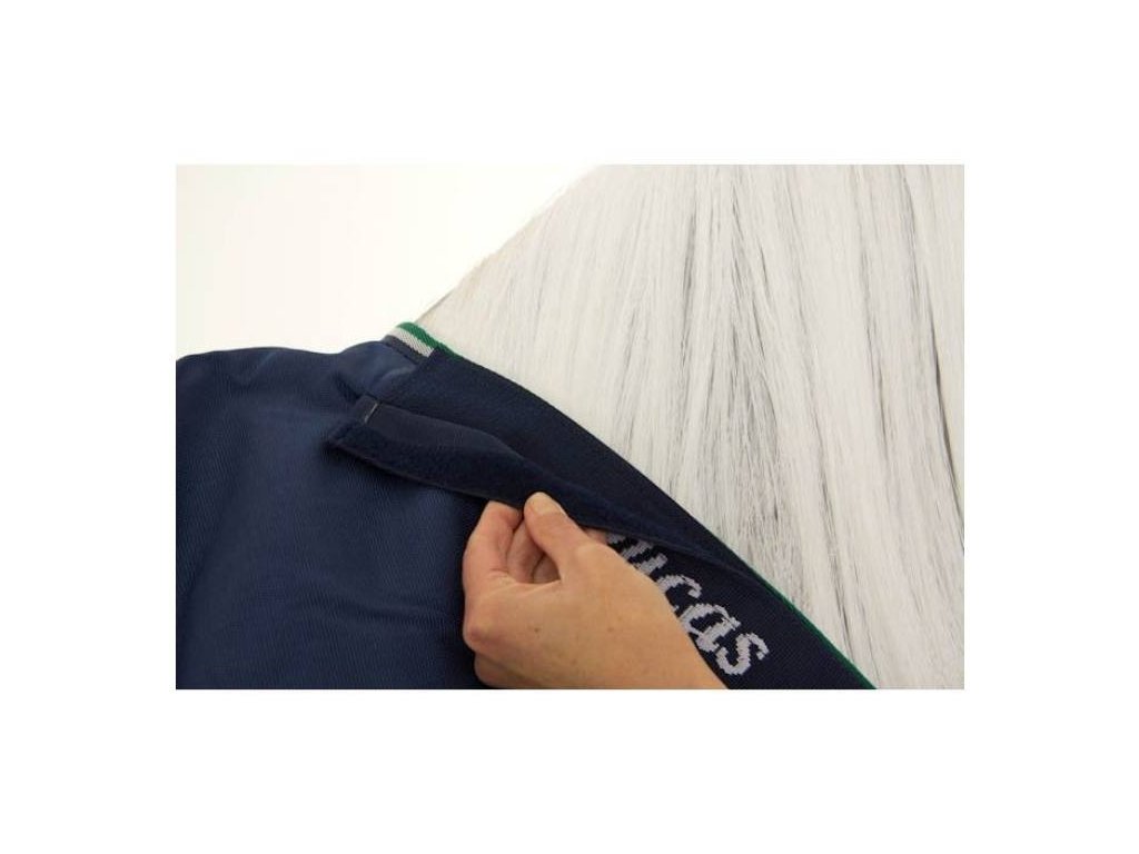 Deka je vybavena patentovaným předním zapínáním Click'n Go s magnetickým zámkem Snap-lock, které umožňuje rychlé a snadné zapínání a odepínání, přičemž kůň s ním nemůže manipulovat. Zapínání je doplněno ochranným suchým zipem. Dále obsahuje křížové zapínání pod břichem, popruhy mezi zadní nohy, popruh pod ocasem a ochranu ocasu.