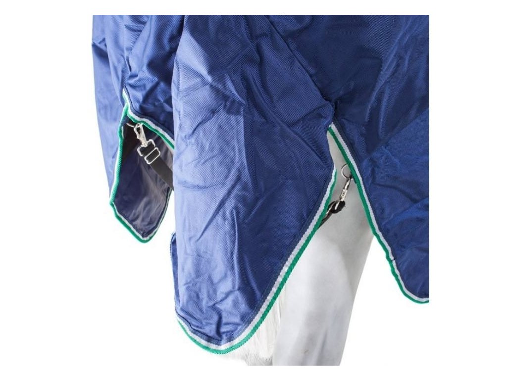 Deka je vybavena patentovaným předním zapínáním Click'n Go s magnetickým zámkem Snap-lock, které umožňuje rychlé a snadné zapínání a odepínání, přičemž kůň s ním nemůže manipulovat. Zapínání je doplněno ochranným suchým zipem. Dále obsahuje křížové zapínání pod břichem, popruhy mezi zadní nohy, popruh pod ocasem a ochranu ocasu.