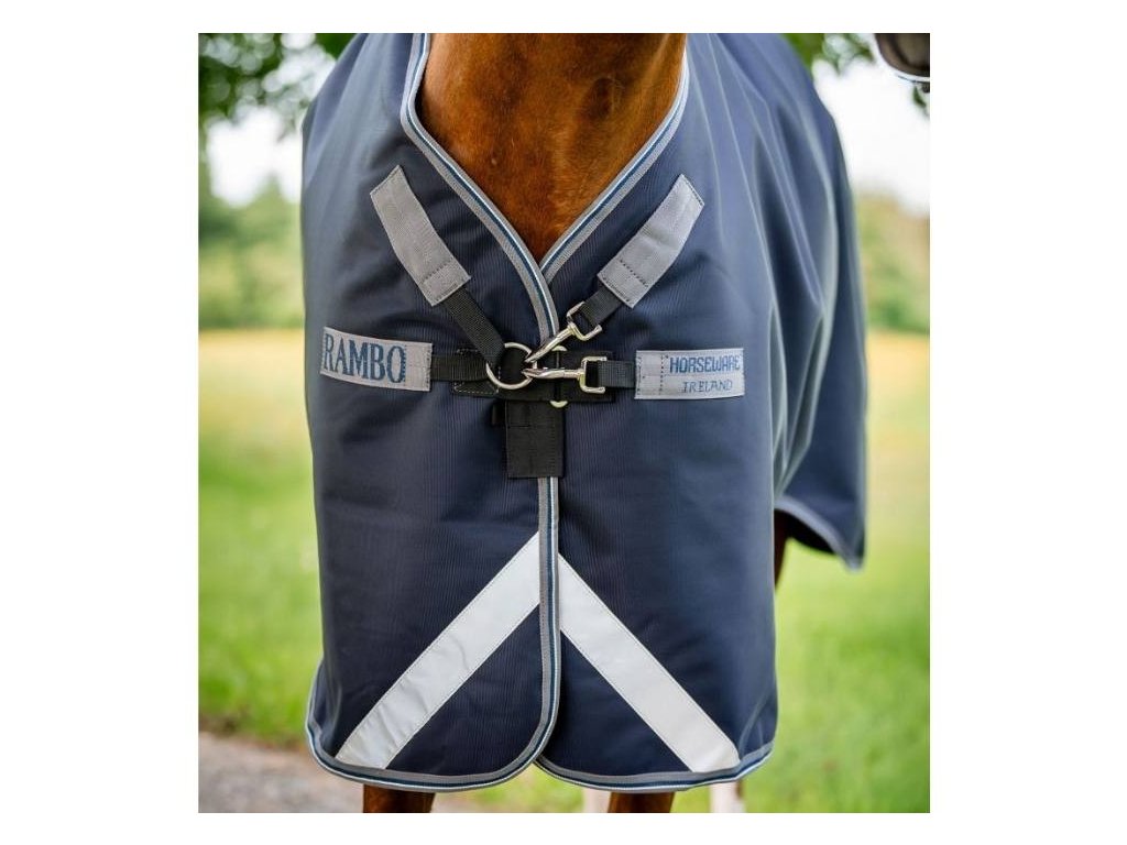 Výběhová deka HORSEWARE Rambo 1680D 50g navy/thunderstorm grey & silver 130cm