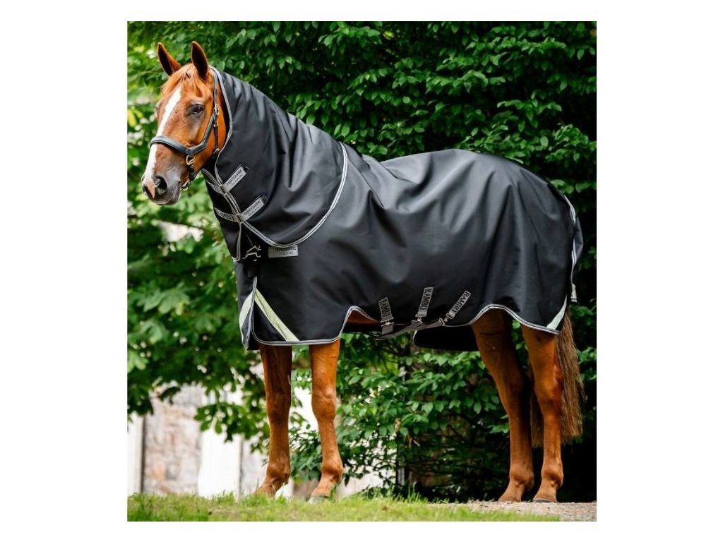 Výběhová deka HORSEWARE Rambo Plus 1680D s krkem 100g black/thunderstorm grey & silver 115cm