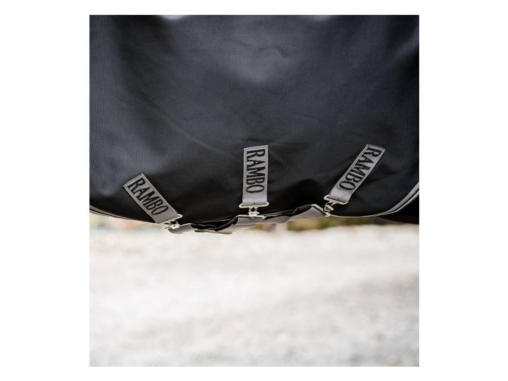 Výběhová deka HORSEWARE Rambo Plus 1680D s krkem 100g black/thunderstorm grey & silver 145cm