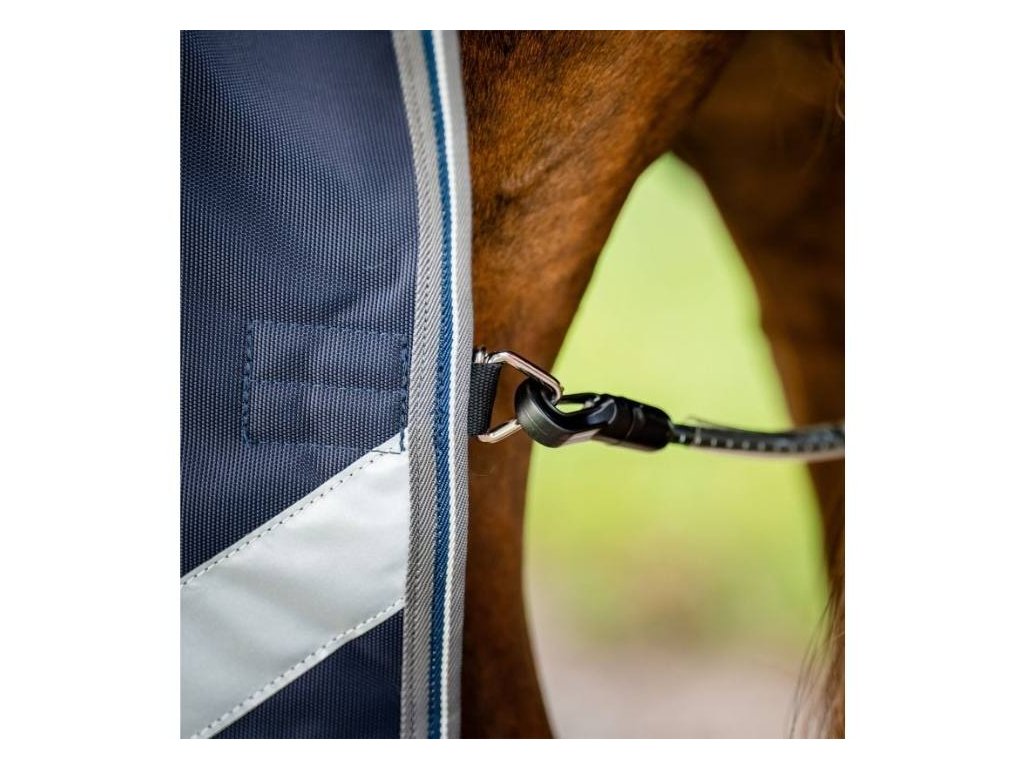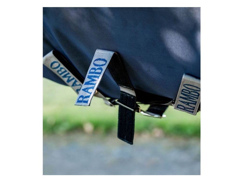 Výběhová deka HORSEWARE Rambo Plus 1680D s krkem 100g navy/thunderstorm grey & silver 155cm