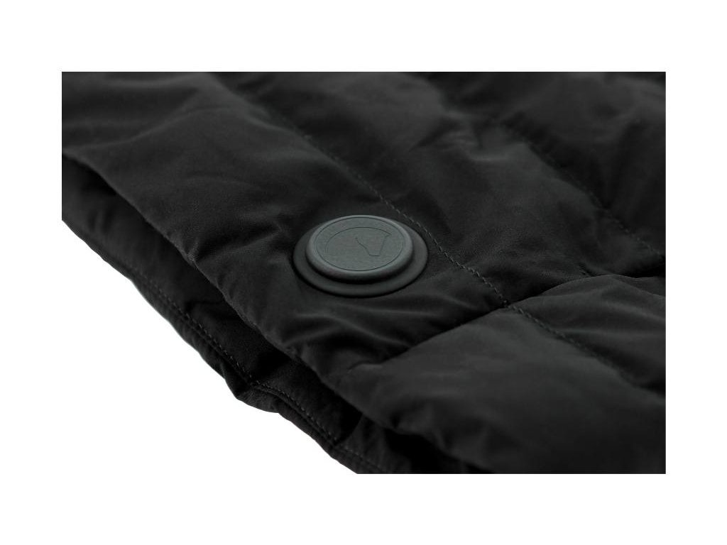 Vesta má přední zapínání a kapsy zabezpečené zipem. Průramky jsou zakončeny elastickým lemem, který zabraňuje pronikání studeného vzduchu, a spodní část bundy je vybavena stahovacím systémem pro zablokování průvanu. Vyhřívací funkce je napájena externí baterií, která se prodává samostatně.
