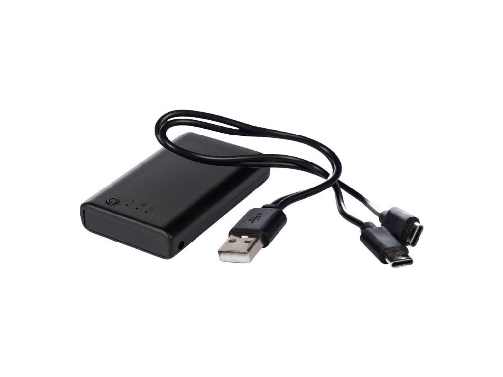 NÁBÍJENÍ: Chcete-li nabíjet pouze nabíječku, připojte napájecí kabel ke zdroji napájení. Doba nabíjení baterie je závislá na kapacitě baterie (nabíječky), 4.000 mAh může stačit na topný provoz cca 4 hodiny.
