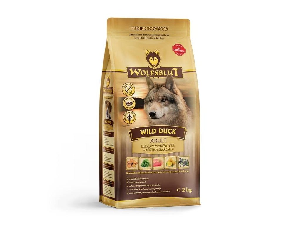 SLOŽENÍ: kachna 44 % (z toho čerstvé kachní maso 25 %, sušené kachní maso 17 %, kachní sádlo 2 %), brambory 24 %, batáty 19 %, pastinák, kachní šťáva, minerální látky, fenykl, topinambur 1,1 %, dýně, cizrna, lněné semínko, rajčata, středomořská bylinná směs 0,5 % (tymián, majoránka, oregano, petržel, šalvěj), ostružiny, maliny, borůvky 0,1 %, černý rybíz, bezinka, bobule arónie, kopřiva, pampeliška 0,05 %, ženšen 0,05 %, hloh 0,05 %, mannan-oligosacharidy (prebiotikum-OS-ligosacharidy), fruktosacharid prebiotika, Yucca schidigera
