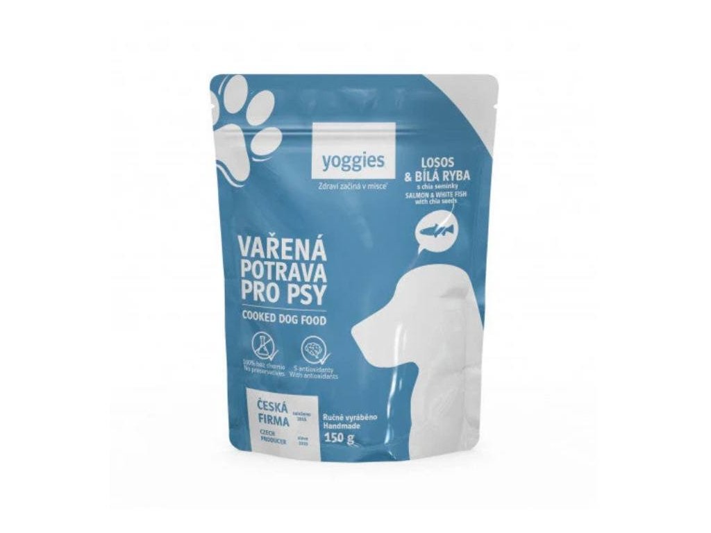YOGGIES vařená potrava pro psy losos & bílá ryba s chia semínky 10x150g